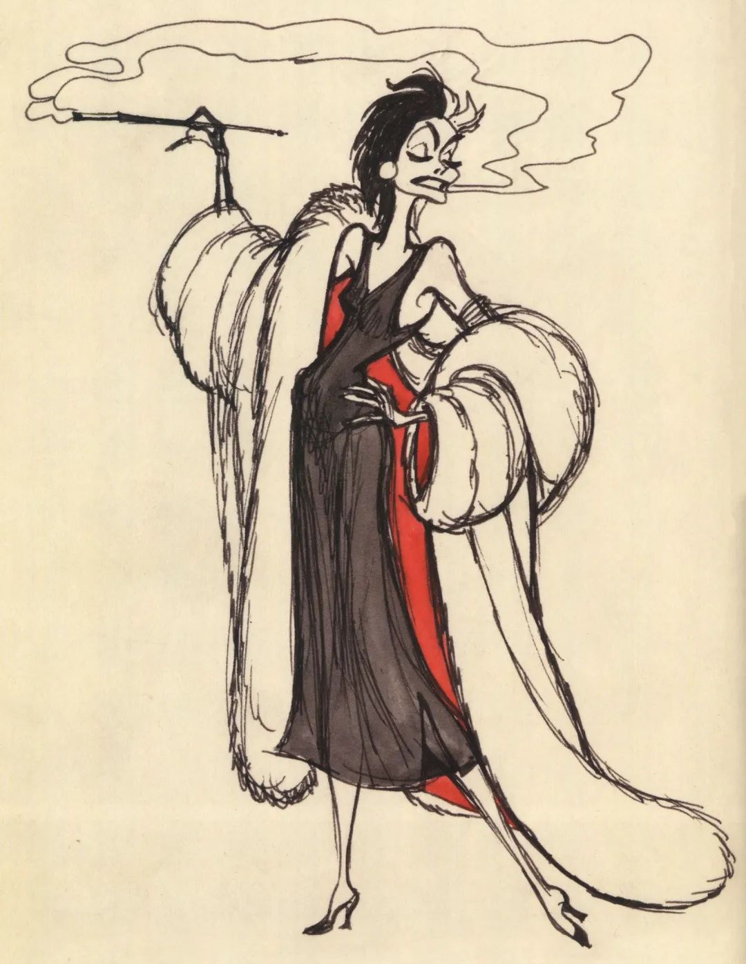 1960年代,迪士尼让这个时尚恶魔的动画形象从此成为童年噩梦,角色设计借鉴了传说中每天抽120只烟的女明星Tallulah Bankhead,个性傲慢又神经质,走到哪都是人群焦点。