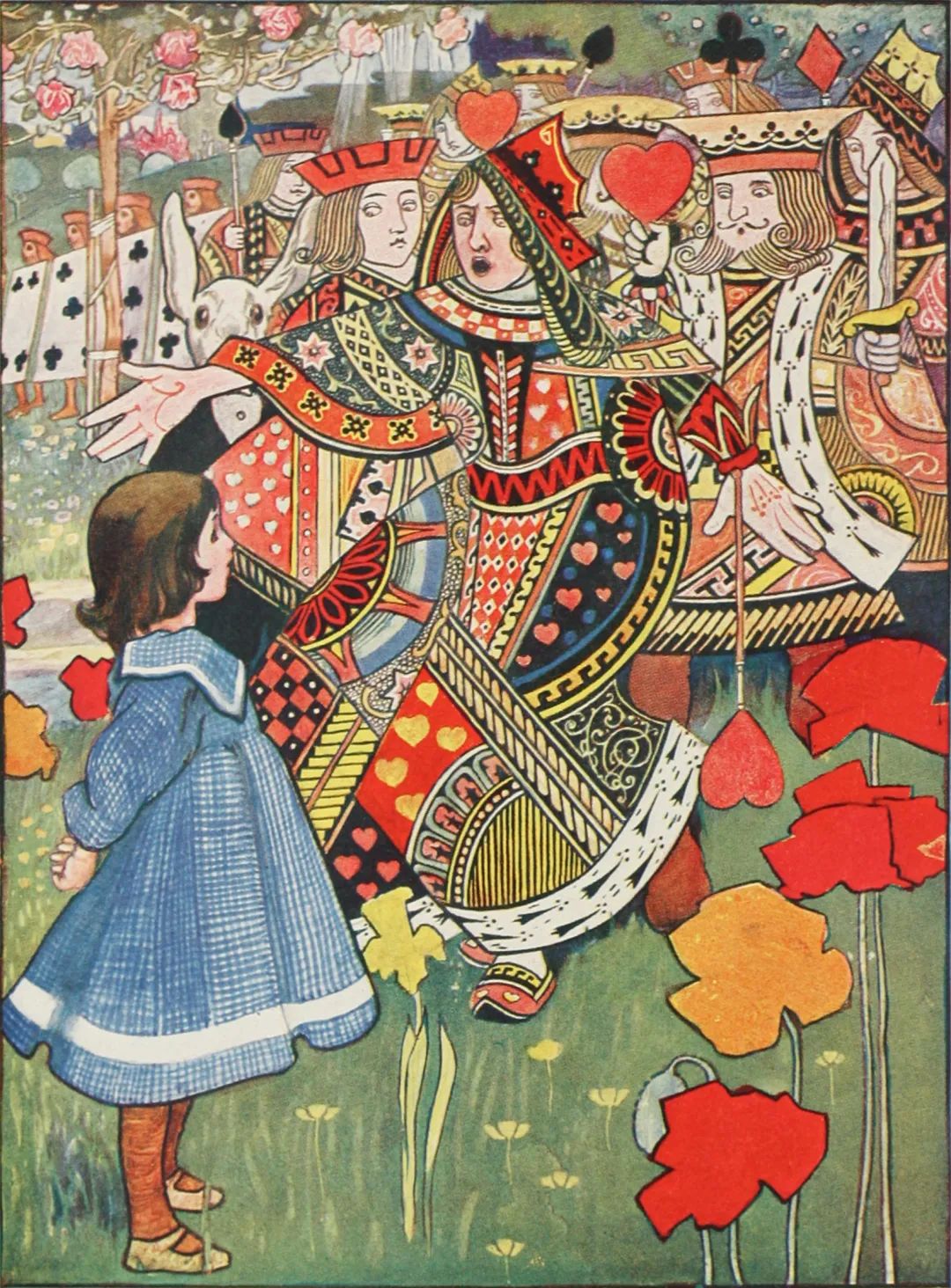 当然咯,在仙境里红皇后说了算,她干脆出台规定,让所有生灵都怪模怪样,什么白瘦高、标准美,统统被一举粉碎。此番对bodyshaming的狠狠反击,也就比我们早上几十年吧。