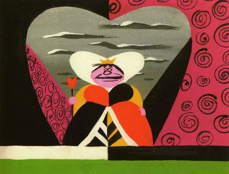 在蒂姆·波顿的电影里,红皇后至少还能走个怪美路线,可古往今来,红皇后的设计思路就遵从老套的恶女审美,到了迪士尼动画师手里,也不知道招谁惹谁,落得胖墩体型,举止滑稽。