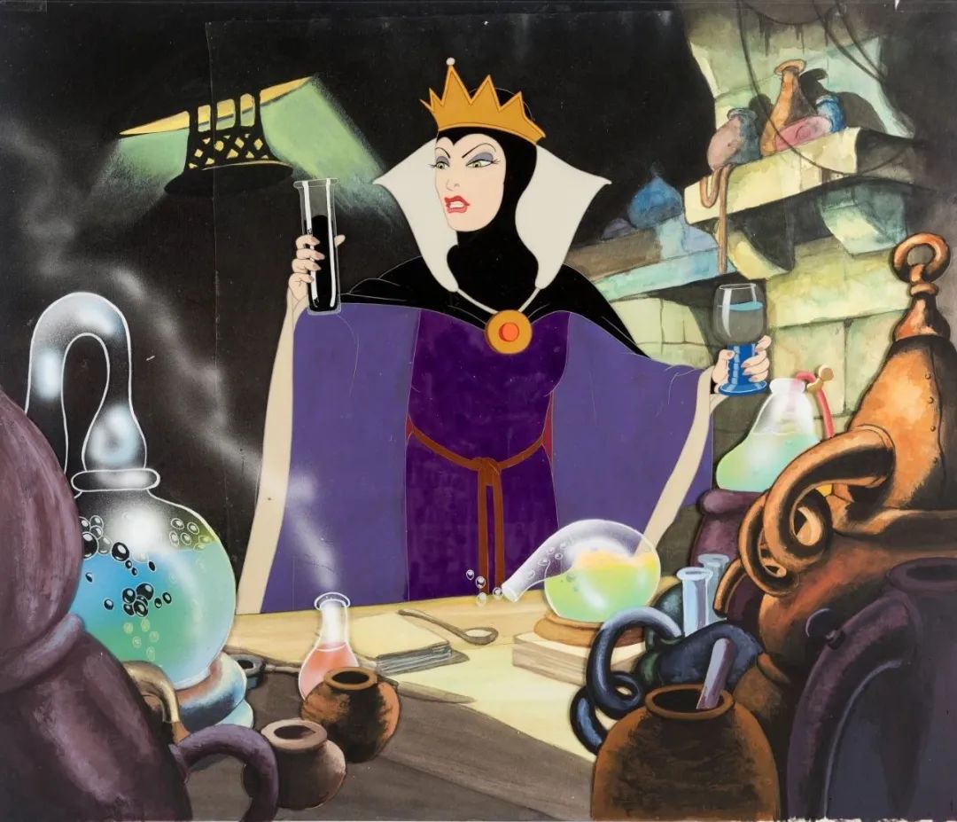 压轴登场的,是迪士尼史上最早登上荧幕的恶女,邪恶皇后。她的出现,让童真世界里的坏女人,第一次抢尽风头。