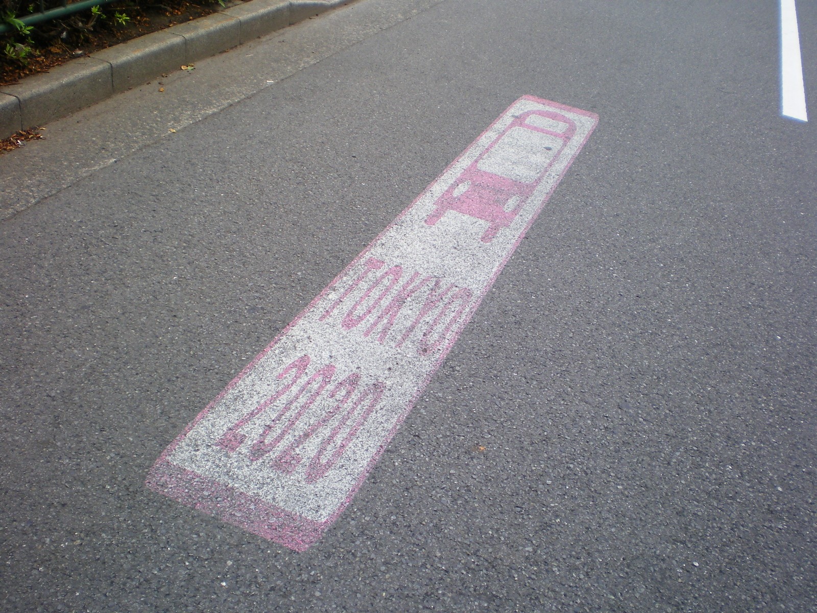 东京街道地面上印有东京2020字样的行车标识。受访者供图
