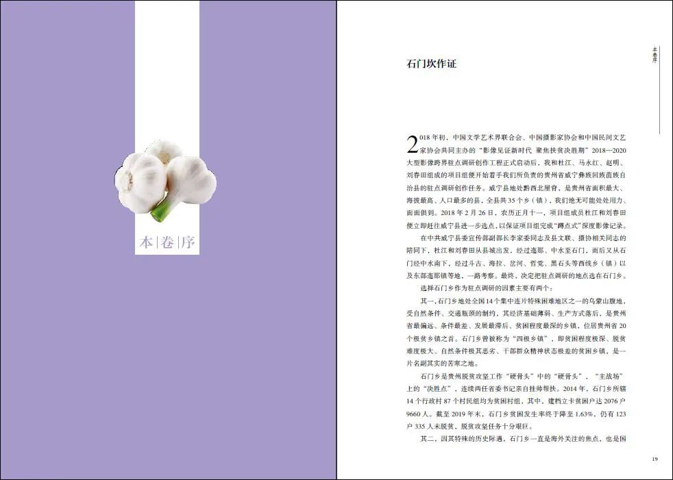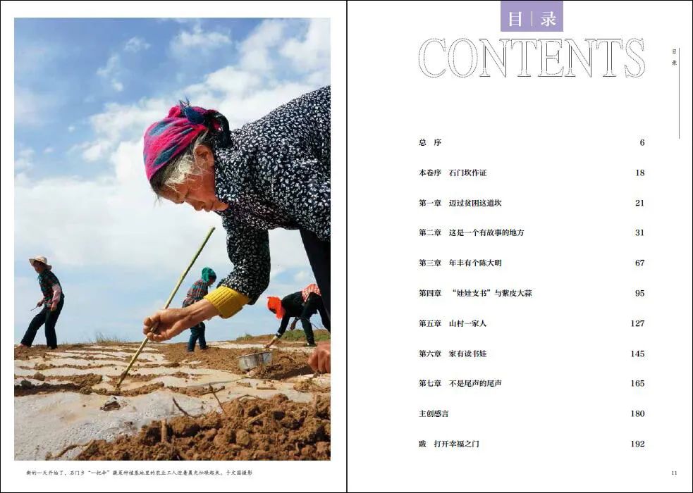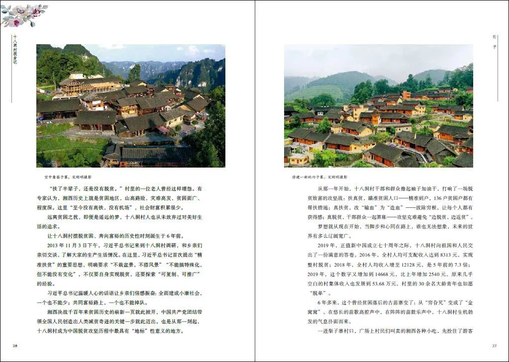 包括《十八洞村脱贫记》《石榴红了——淅川脱贫档案》《古乡厚土——陇县乡村扶贫纪实》《迈过石门坎》《光耀州城》《科尔沁草原上的脱贫路》《沸腾的西海固》《寻乌——寻迹脱贫攻坚路》《梅林村——一个深度贫困村的影像档案》《一“页”鱼龙舞》在内,该系列图书中的10册率先由中国摄影出版社出版发行。《十八洞村脱贫记》