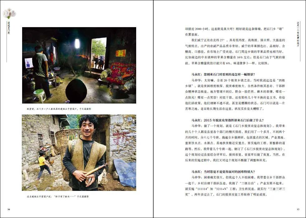 本书是一部纪实文学作品,于文国、杜江、赵明、马永红和刘春田5位图文纪实工作者怀着“记录时代、抒写历史、讴歌生活”“记实、记事、记史”的初衷,先后5次走进贵州省毕节市威宁彝族回族苗族自治县石门乡驻点调研,沉到扶贫攻坚的最底层,走村串户,访民情、听民声、察实情,并在此基础上拍摄、整理、撰写而成的。书稿以图文并茂的方式记录了脱贫攻坚战打响以来,贵州省最偏远、条件最差、发展最滞后、贫困程度最深的乡镇——石门乡的深刻变化,以及石门人在精准扶贫政策的帮助下,通过自身努力脱贫致富的故事,不仅具有较高的文学艺术价值,而且具有较高的文献史料价值。