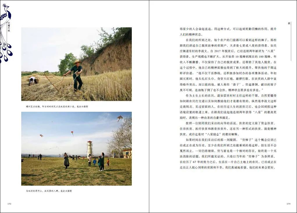 本书聚焦陕西耀州区那些普普通通的乡村,向当地的专家了解了这片土地的人文景观和历史,结合随机采访和重点追踪的多种方式,分别从镇、村和个人等角度切入,通过切片式的社会调查,力求全方位探索当地百姓脱贫的真实状况。为保证脱贫后保持积极向上的精神状态,彻底解决返贫的问题,耀州区通过“八星励志”评选活动,旨在更深入地打牢脱贫根基。通过扎根精准扶贫的人们对物质脱贫与精神提升的探索与追求,从新的侧面讴歌了新时代中国特色社会主义建设的伟大创举和突出成就,充满感召力和启示性。