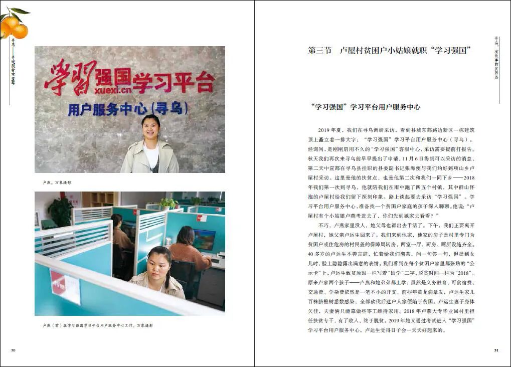 本书以寻乌为驻点地,清晰完整的叙述了寻乌的地理位置、自然气候、历史沿革,以及寻乌的贫困状况与脱贫实绩。其后则着重叙述了寻乌当地各个具有代表性的村落,并通过脱贫个案的形式展示了当地是怎样用当地特色来带动当地经济发展。主编闻丹青和团队成员多次深入江西省寻乌县驻点调研,记录了寻乌县扶贫攻坚所开展的工作和所取得的成果,呈现了寻乌县稀土开采、柑橘种植和黑乌鸡养殖的状况,并以多个典型案例讲述了寻乌县人脱贫致富的故事。