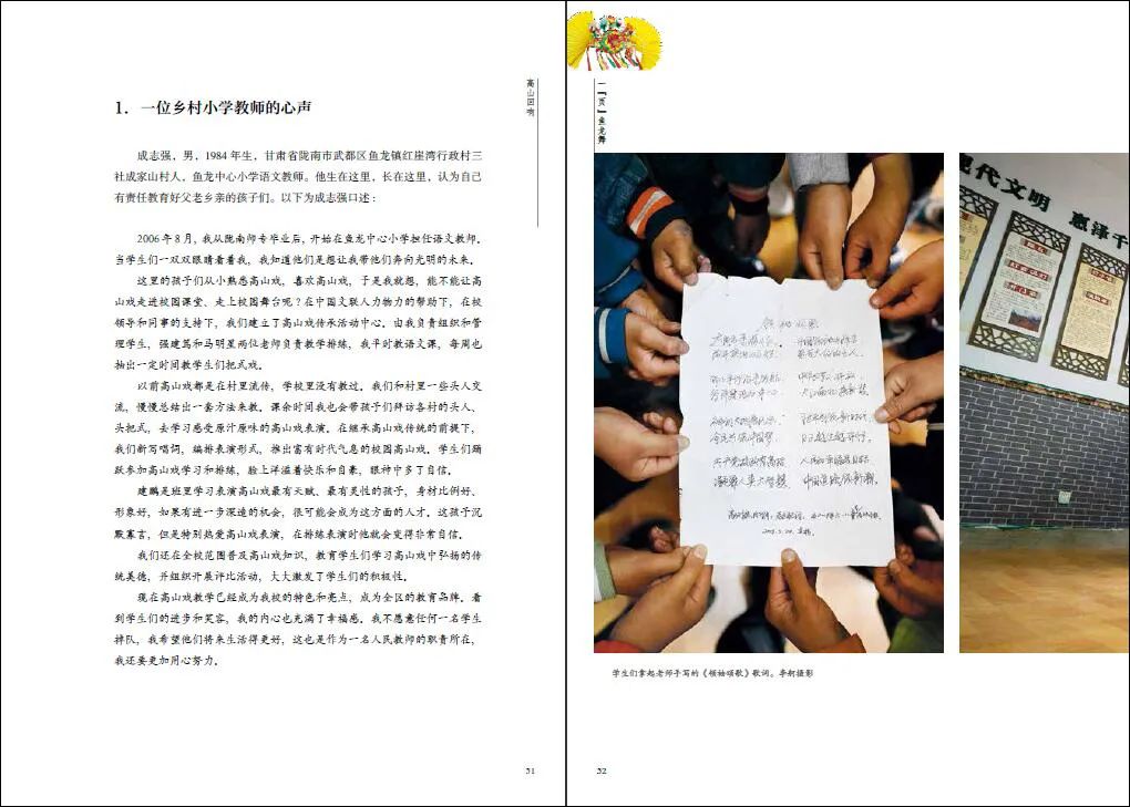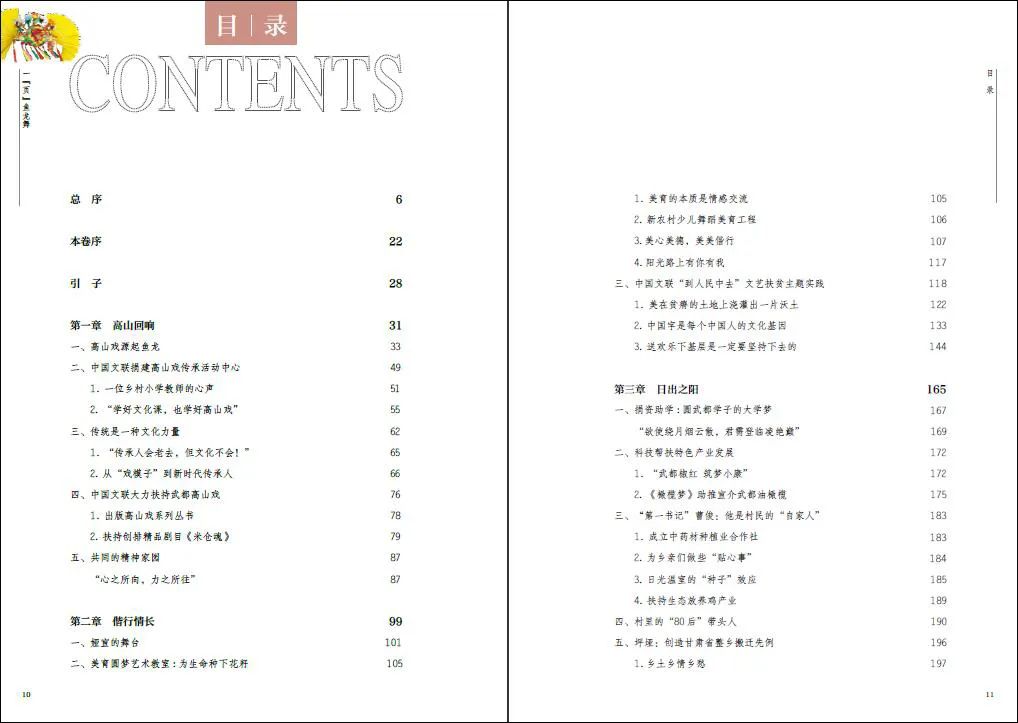 全书分三个部分叙述中国文联扶贫工作的成绩:第一部分“高山回响”,聚焦扶贫攻坚中的文化传承,通过反映中国文联对武都高山戏的扶持,呈现参与高山戏的各方面人员和当地百姓的生活现状,以及他们对未来的渴求。第二部分“偕行情长”,记叙中国文联对武都20多年的扶贫历程,发挥自身专业优势和人才优势,聚焦扶贫攻坚中的乡村美育。第三部分“日出之阳”,通过全面记录中国文联的扶持给当地教育、科技、养殖、种植等方面带来的变化。本书坚持田野调查式的驻点影像创作,以直观素朴的影像、平实深刻的文字、鲜活典型的人物、生动细腻的故事,记录百姓生活状态和精神面貌的改变,从新的侧面讴歌了新时代中国特色社会主义建设的伟大创举和突出成就,充满感召力和启示性。