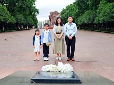 彭壮壮带妻子、儿女赴重庆歌乐山烈士陵园烈士公墓祭拜奶奶