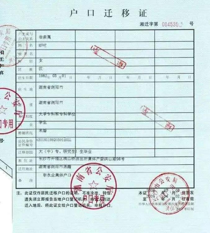 户口迁移证千万不能丢迁往地址的填写同报到证一样,也是依据三方协议而定。三方协议里有一栏是户口迁移地址。学校便据此向所在地公安机关提供每位毕业生的户口迁移信息。公安机关拥有毕业生的户籍信息,所以其他信息一般不会出错,但是户口迁移地址一定要仔细核对!以免出错。