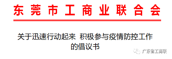 近期,东莞接连出现新冠肺炎确诊病例,疫情防控形势十分严峻,我们正处在与疫情赛跑的关键时刻,为共同打赢这场疫情防控硬仗,凝聚全市民营经济领域抗疫力量,全力以赴助力疫情防控工作,现向全市广大民营企业及各镇(街道)工商联(商会)、各团体会员发出如下倡议: