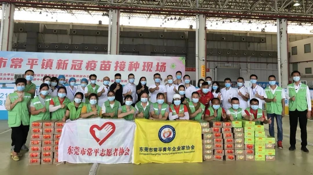 6月20日上午,常平镇工商联副主席(副会长)、常平青委会主任,常平青企会长谭焕志带领协会成员代表10余人,前往常平会展中心慰问坚守在防疫一线的医护人员、志愿者、工作人员,为他们送去王老吉、清凉茶、菊花茶共150箱;协会会员单位会龙居酒楼免费提供午餐262份,以表致敬"逆行者"用生命守护生命,用无私奉献筑起疫情防控的一道道“健康长城”。卫健局任小芳副局长;镇团委任世轩、卢汉昌副书记出席活动现场。据了解,常平会展中心大型临时接种点疫苗接种最高峰一天约22000剂次,防疫一线人员“早七晚六”不辞劳苦,全力构筑保障人民群众健康的免疫屏障。