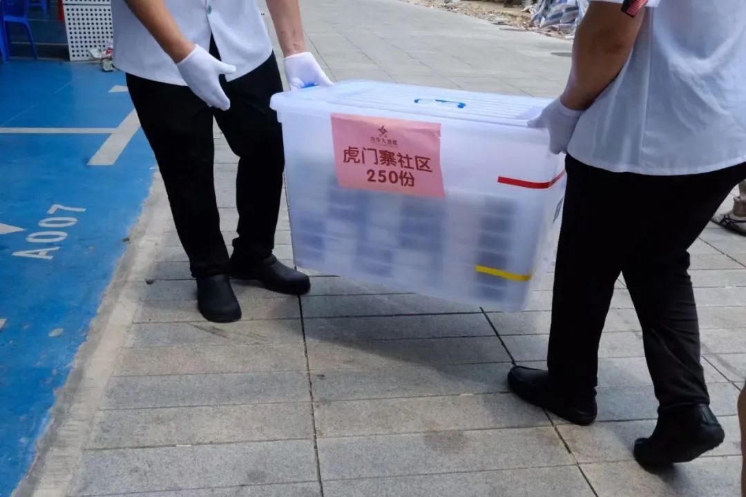 6月18日,因疫情防控需要,东莞市疫情防控指挥部发布通告,要求开展全区全员核酸检测工作,不漏一户,不落一人,同时愉景威尼斯广场作为莞城街道新冠病毒核酸筛查采集点,接到通知后,愉景威尼斯广场,高度重视,积极响应。第一时间召开应急防控会议部署各项工作,迅速调配人员及物料到采集点。愉景物业身体力行奋战在一线,与政府有关部门及街道、居委紧密协同全力配合、保障全员核酸检测工作。虎门镇工商联主席企业龙泉国际大酒店御品四季大酒楼为疫情防控的一线医护人员提供爱心餐