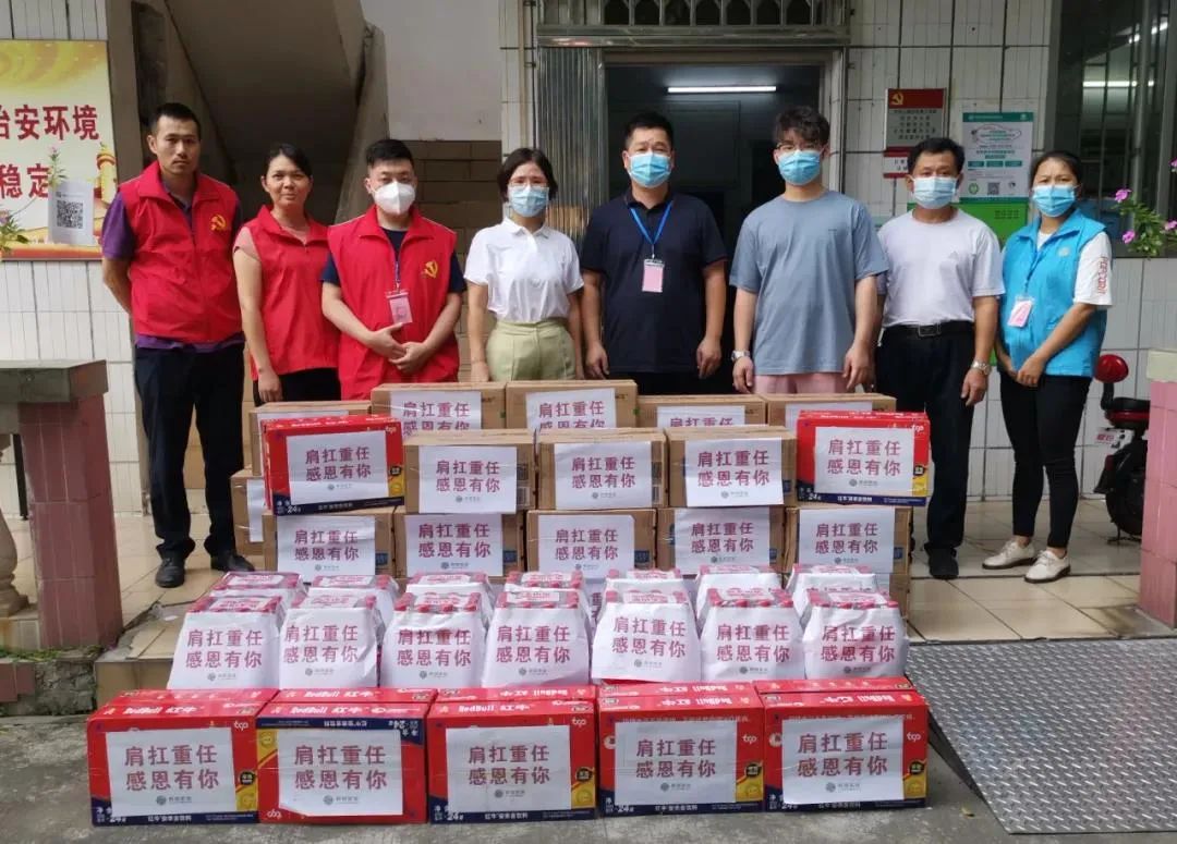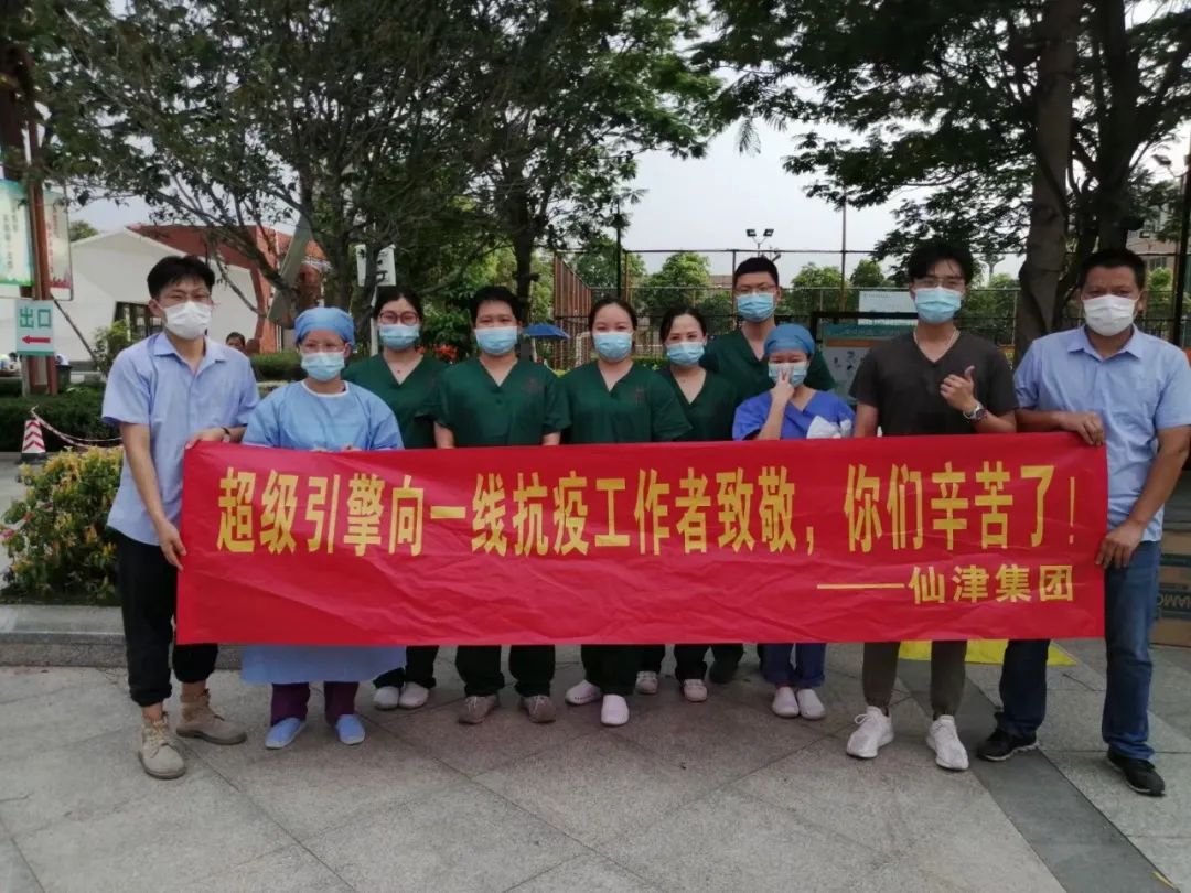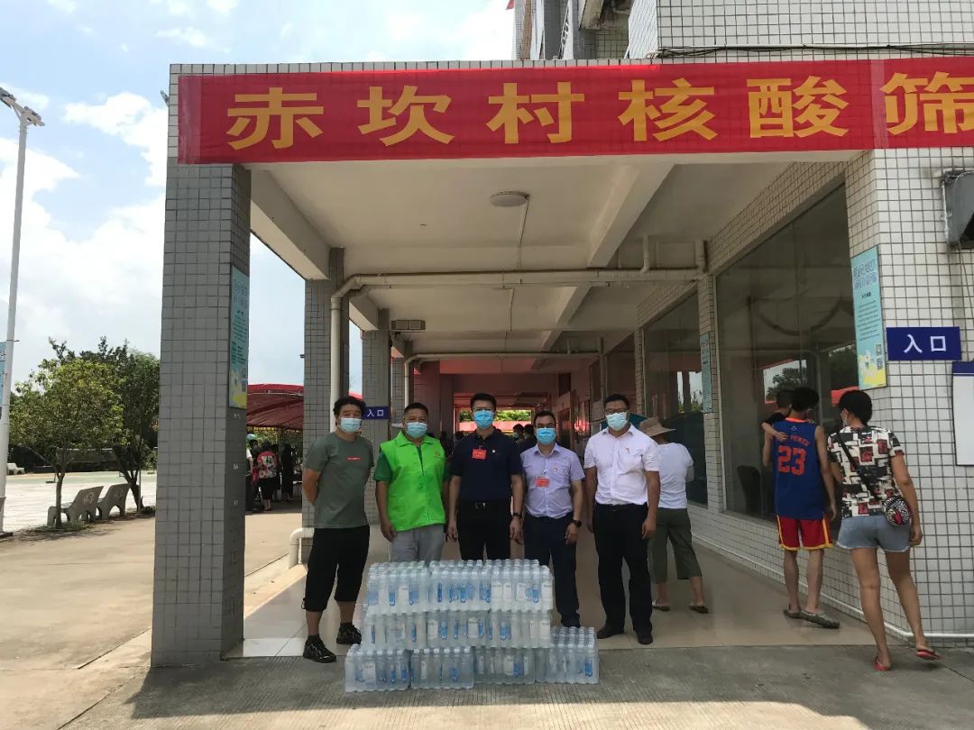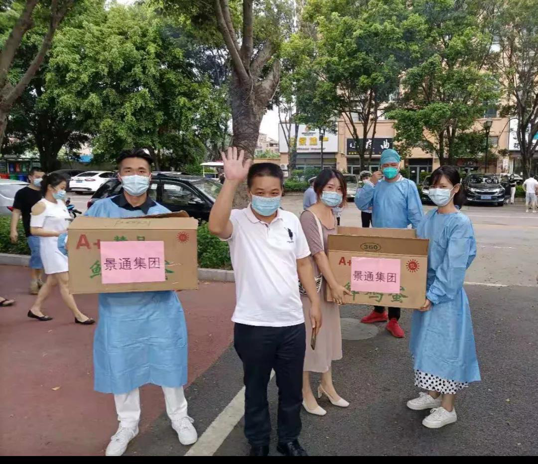东莞市仙津保健饮料食品有限公司副总裁、横沥镇工商联(商会)副主席邓启俊虽工作繁忙,但心系民生,在6月21日全镇人民核酸检测当天,指导仙津党支部派出党员前往核酸检测点,开展“我是党员我先行,用心用情暖民心”志愿行动,现场指引民众登记葵花码并维持现场秩序,贡献自己的绵薄之力。同时,东莞市仙津保健饮料食品有限公司还为医护、工作人员提供“超级引擎”能量饮料,让奋战在一线的医护、工作人员补充能量、恢复体力。景通集团慰问谢岗抗疫防护一线工作人员
