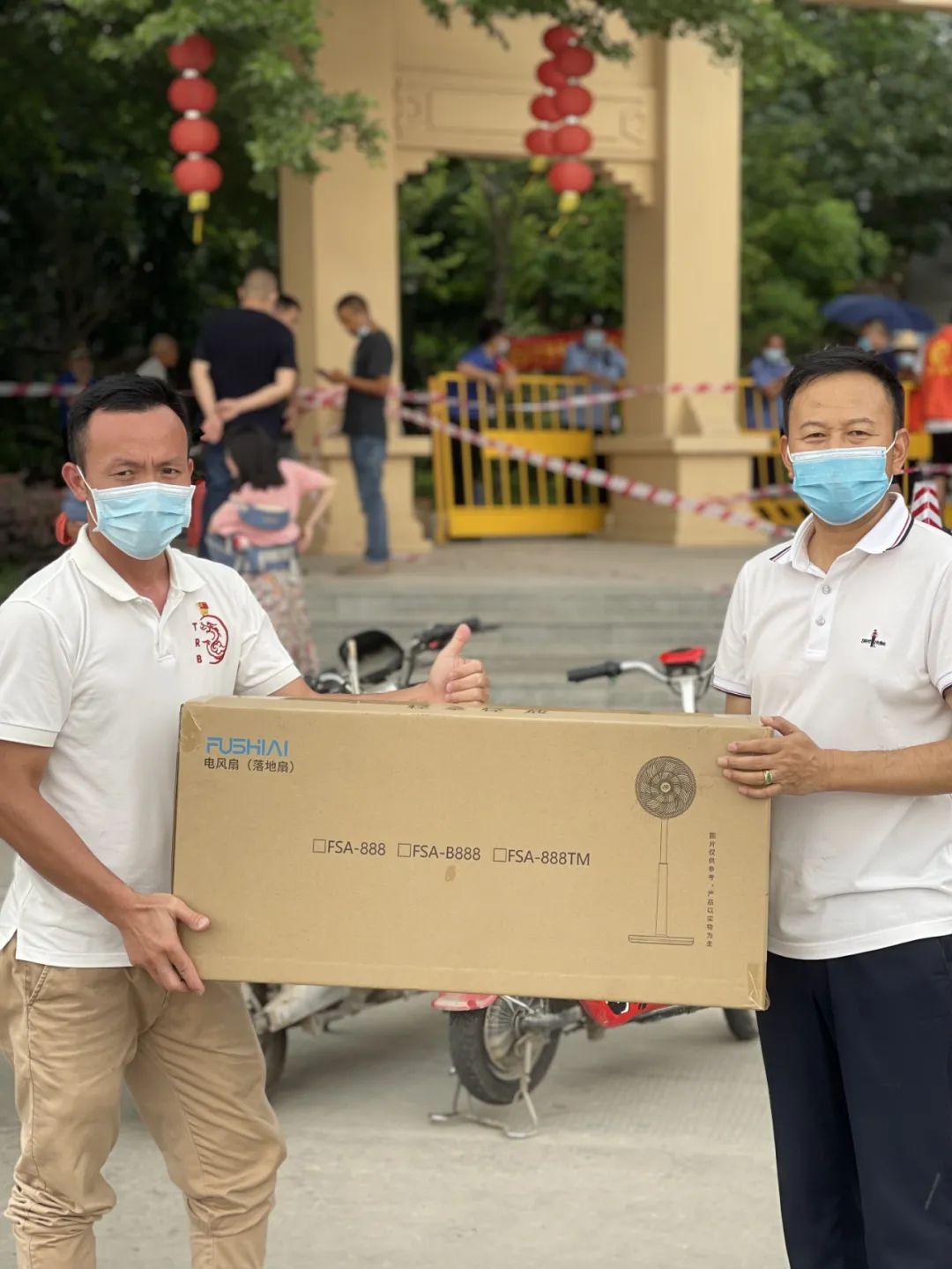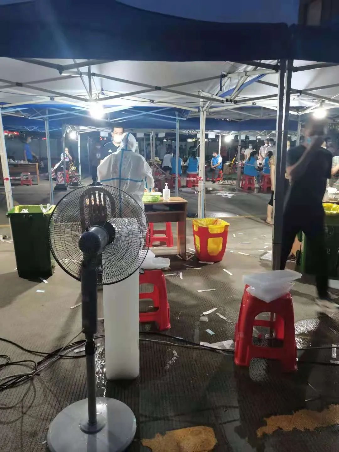 横沥镇工商联(商会)副主席企业广东富士多实业投资有限公司,6月21日下午,在了解到全民检测当天天气炎热,镇工商联(商会)副主席张来生积极行动,为抗击疫情贡献力量,亲自到核酸检测点现场,为医护人员、工作人员与民众安装广东富士多实业投资有限公司的无线风扇,让医护人员、工作人员与民众在这个炎热天气下感受到一丝清凉,安抚工作与等候中的焦躁。常平个私协慰问防疫一线工作人员