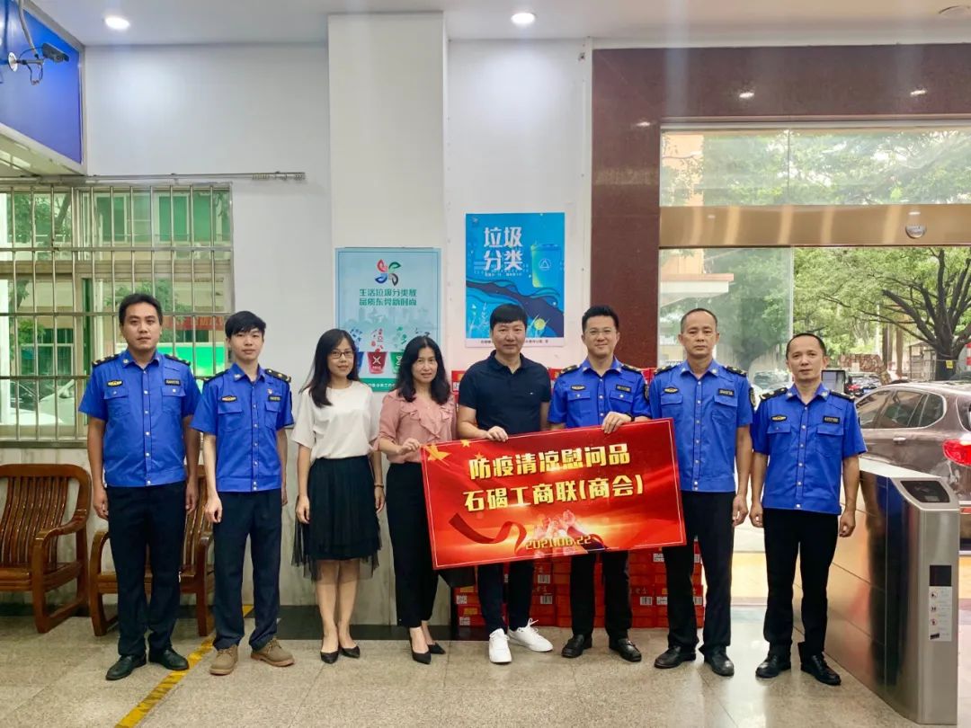 为了配合抗疫防疫一线工作, 石碣工商联(商会)积极响应市工商联的号召,经翟志坚主席和陈柱安副主席兼秘书长一致决定,于6月21日购买60箱王老吉清凉解暑饮料,送给顾问单位——城市管理综合执法局石碣分局一线抗疫人员,并于22日早上由陈柱安携秘书处一起到执法分局向一线抗疫人员进行慰问。常平镇工商联文化顾问林环题字致敬白衣天使