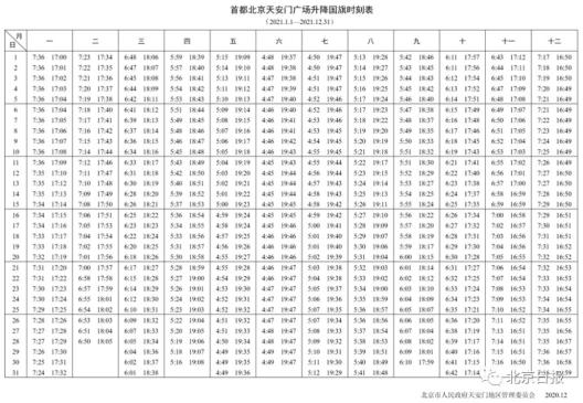 有2021年全年升降旗大致时间表吗?