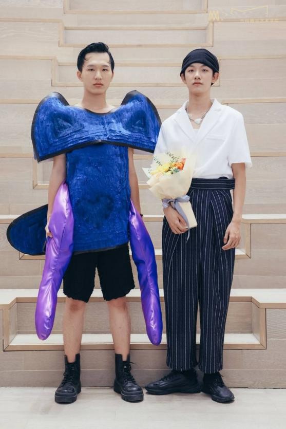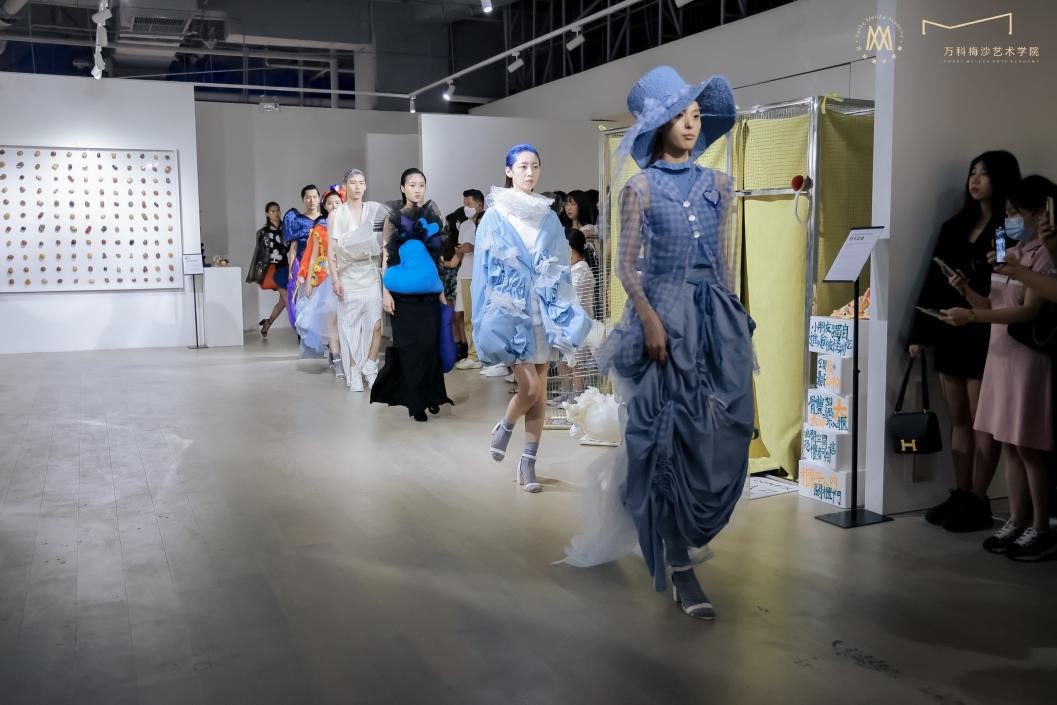 时装秀主题灵感来源于川久保玲设计中的标新立异及解构美学特色,她作为时尚界离经叛道的革命者,重新定义了时尚和美,它创新性地剪裁方式都成为了学生们借鉴和学习的标杆。除此以外,再结合一本充满荒诞不经奇思异想的书,路易斯·卡罗尔《爱丽丝梦游仙境》中的元素,更是让学生们的想象力得到充分发挥。这一切都是对夸张剪裁、非常规构造方式及有影响力设计的探索,捕捉在创作时异想天开和新奇刺激的灵感。指导老师Louie采访时表示,大家的作品充满了天才的想象,非常不可思议,每一件作品他都很喜欢。