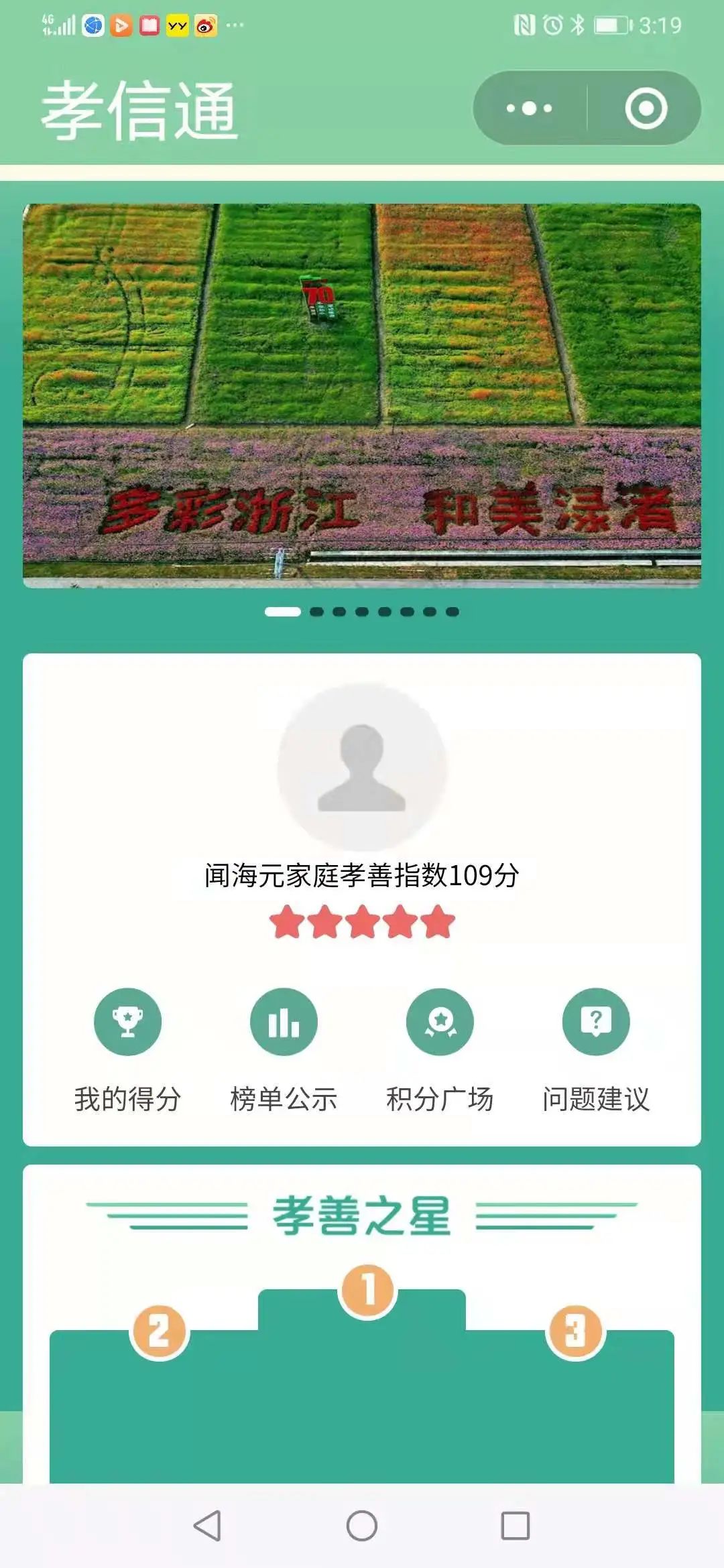 测评一键智达。改变了传统纸质化统计、人工评价方式,系统将自评、初评、审议、公示等工作转为线上操作,直接生成结果,实现评价一键智达。分数一屏通览。系统设置榜单公示栏目,群众在手机端既能看到自己的分数,也能看到五星家庭荣誉榜,评价结果一屏通览。