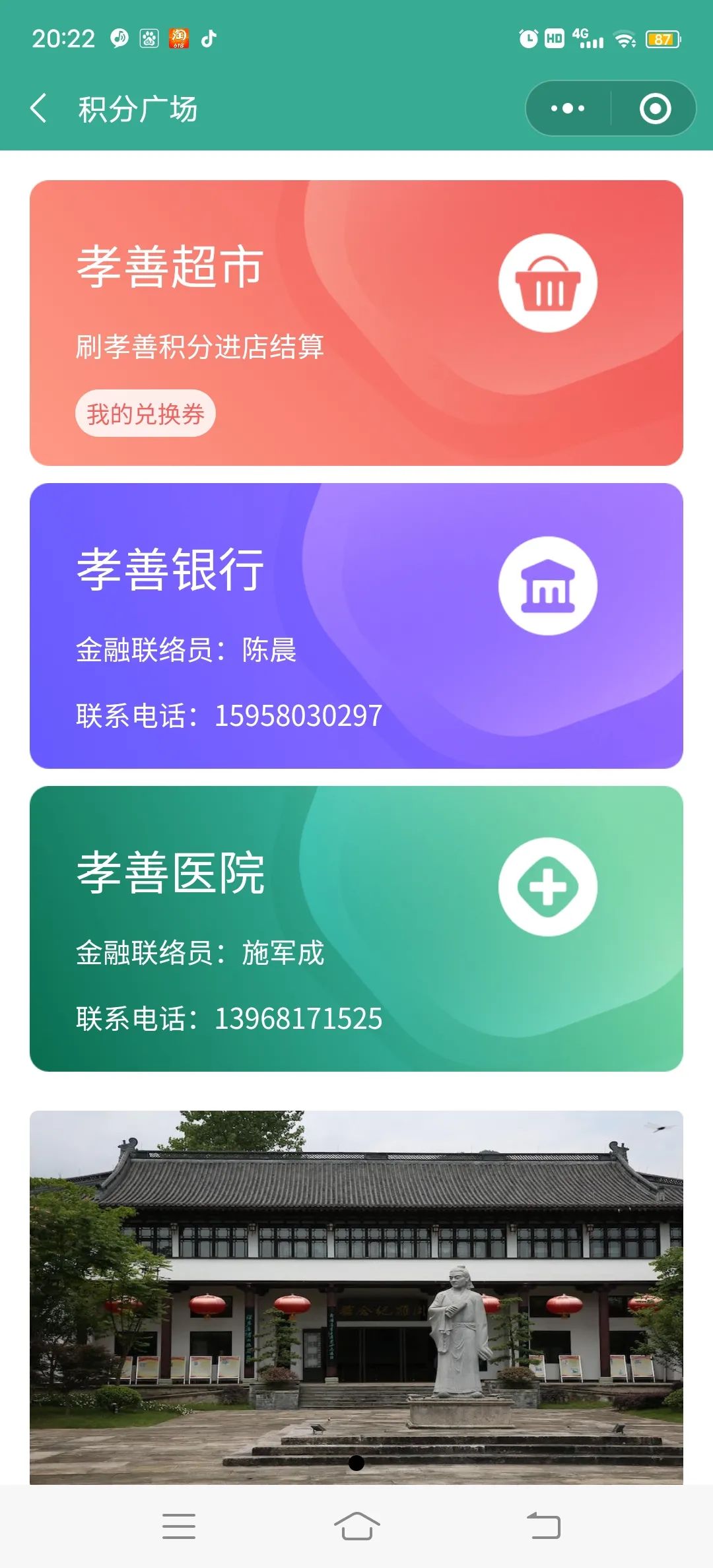 结果一码运用。推出积分广场,通过二维码,群众在孝善超市可直接兑换物品,在孝善医院免费体检等实惠。