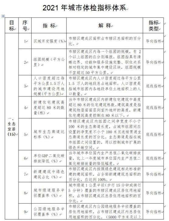 由生态宜居、健康舒适、安全韧性、交通便捷、风貌特色、整洁有序、多元包容、创新活力8个方面、65项指标构成城市体检指标体系。(如下图)