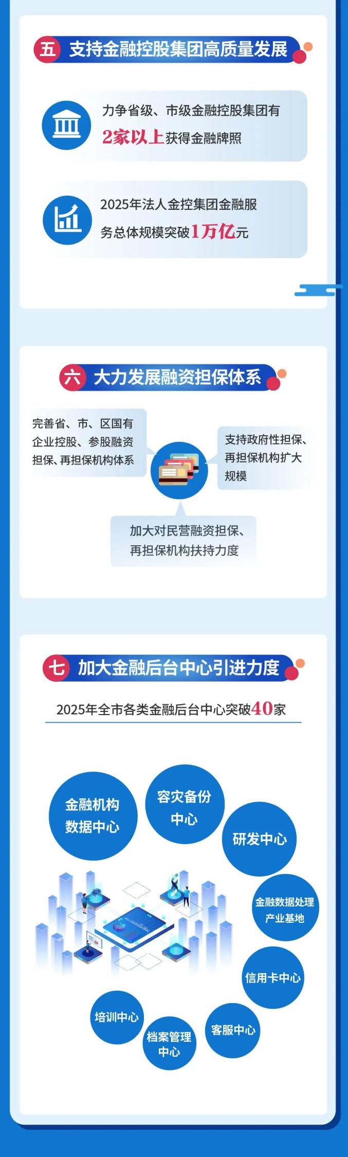 打造标杆级金融创新体系。打造全国一流科技金融创新中心。大力发展绿色金融、消费金融、文化金融、大健康金融、物流金融。