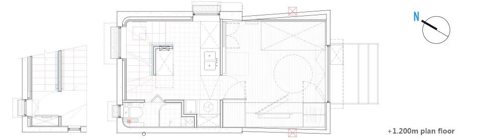 ▲老宅区位原始建筑1947年竣工,由三层组成。面宽5.5米,深度约15.2米。南北朝向,南北各有入口,由于内部复杂隔间很多,深度也很深,整体室内的采光较很差。由于建筑修建时间较早,建筑局部构造有修复结构需求的可能,因此为建筑整体做了加固设计,并统一了整个建筑的层高,将原来位于北侧的楼梯全部拆除。