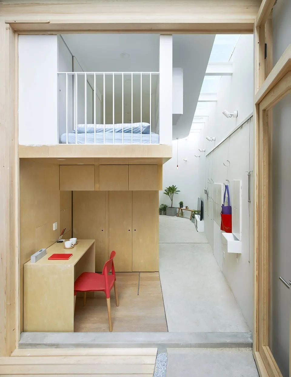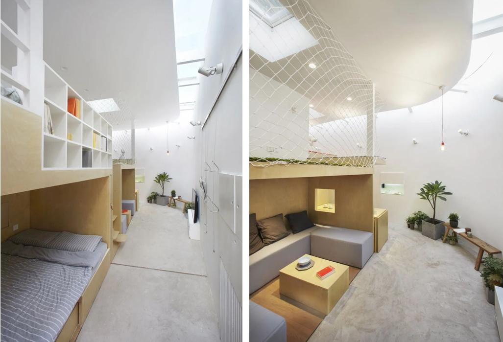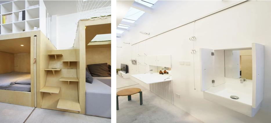 ▲模块化家具墙面小朋友的床和书桌以及仓储连接在一起,主人的小孩很喜欢这个房子,在楼梯爬上爬下,在院子里不停的玩耍,这也是设计师的一个初衷,给这个孩子一个更大的世界,站在另一个维度去理解这个不停变化的世界。