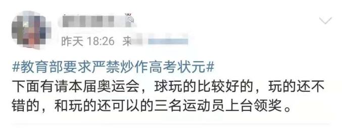 网友评论:不炒高考“状元” 炒“最强王者”对于上述种种现象,有网友一言蔽之: