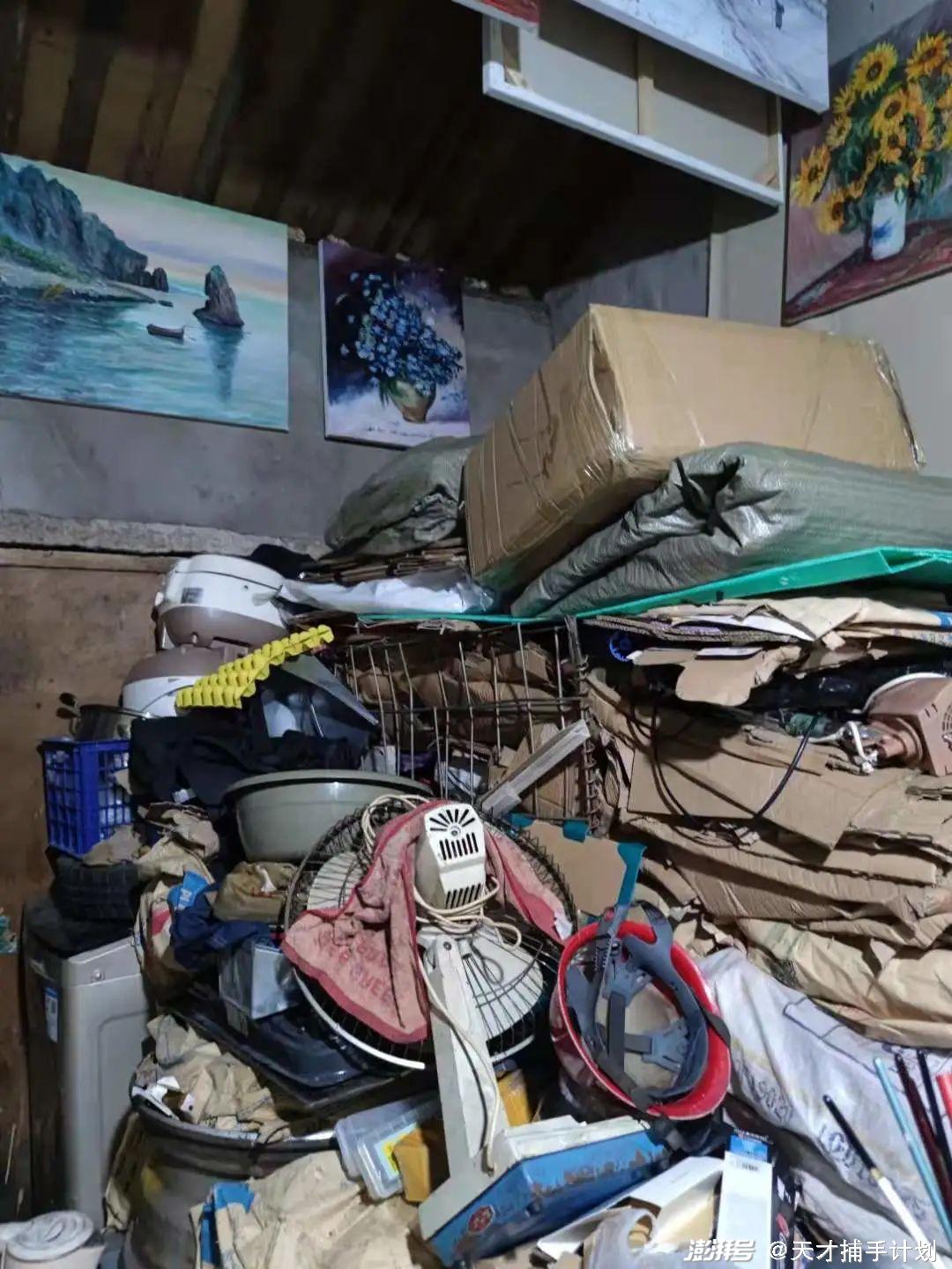 房间里一米多高的废纸箱、生锈的电风扇、落满灰尘的电脑,都显示了他废品回收员的身份。