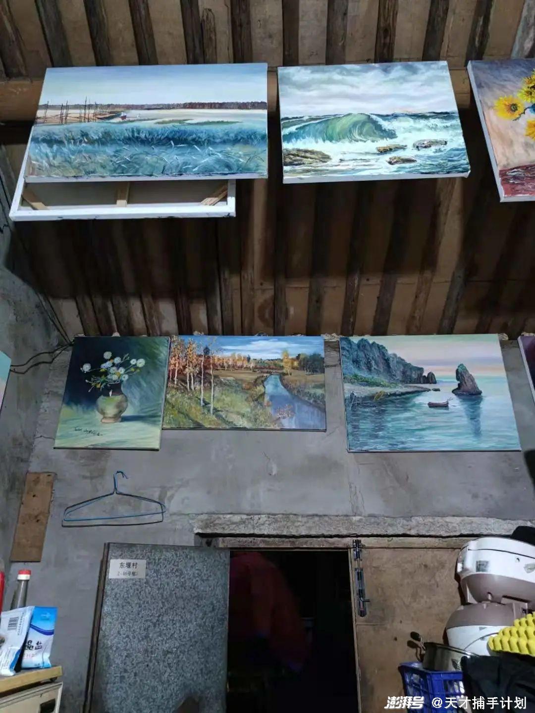 有了订单,他不仅不用烧,还可以光明正大地把画挂在屋檐下、墙壁上。油画不容易干,他要晾晒半个月,等干透了,再给客户寄出去。