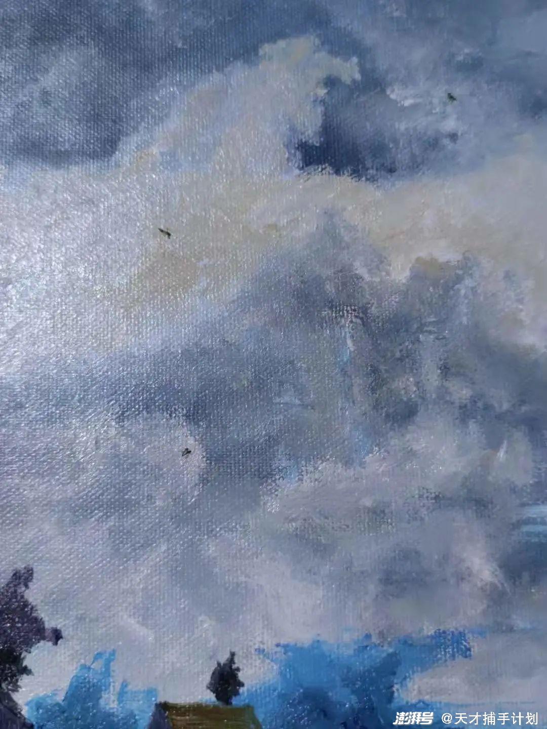 但多数情况下他不这样。他通常两个小时就能画好一张油画,以应付那些没完没了的商业订单。作为油画,他的作品卖得很便宜,三五百一幅,因为在快手展示了自己,不少人找他画,订单都排到了三个多月之后。