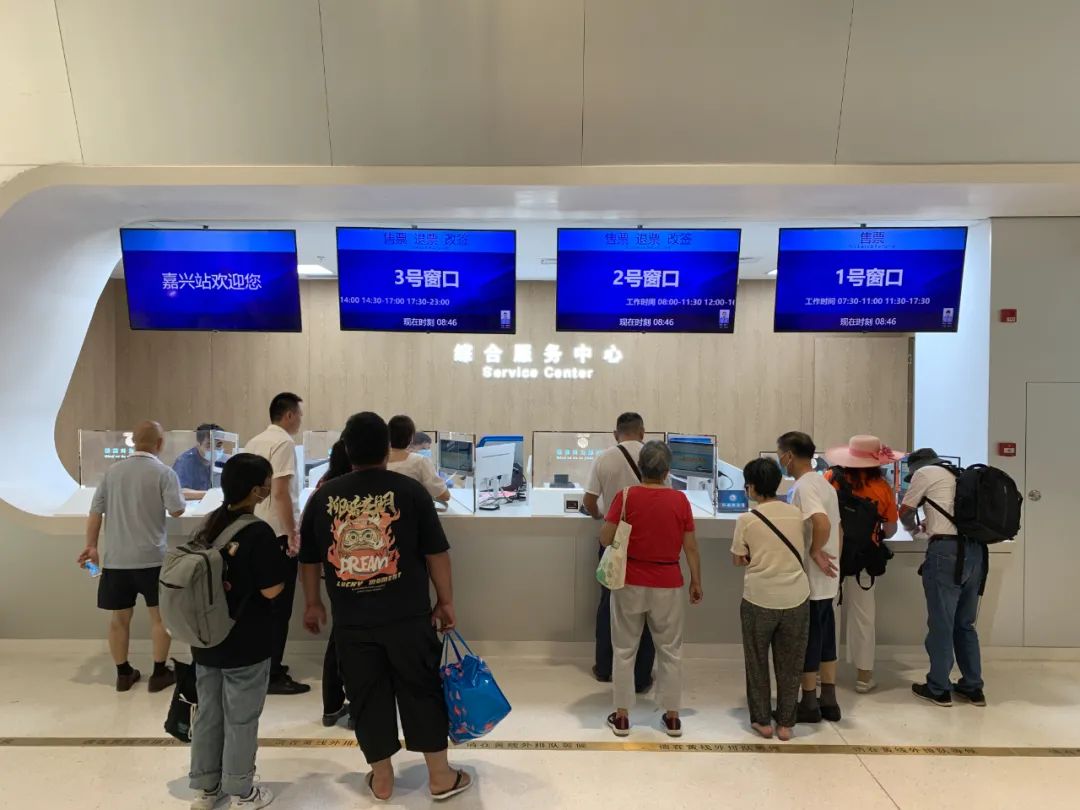 针对嘉兴火车站恢复运营,铁路部门精心编排列车运行图,自6月25日起,车站办理客运业务的旅客列车总数62对,较之前增加13对列车(动力集中型动车组10对),嘉兴至沪、杭间列车加密开行,开行方向覆盖长三角、华中、华南、华北等地区,旅客乘火车到嘉兴瞻仰南湖红船将更加便捷。同时,为了让旅客出行体验更加美好,嘉兴火车站在南北候车大厅分别设置了“12306红船雷锋服务台”,为旅客提供各种咨询服务,售票厅采用开放式售票的方式,让售票员和旅客能够近距离沟通,其中无障碍工位的台面高度可以调节,满足特殊重点旅客的购票需求。