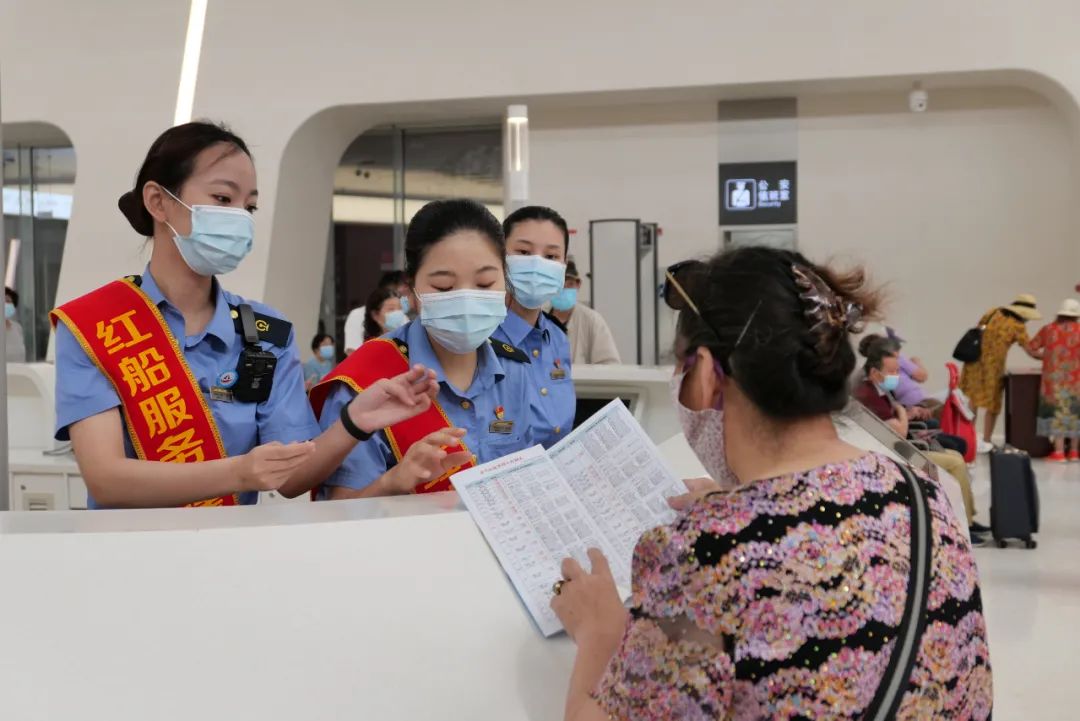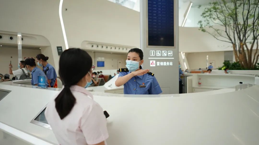 服务台客运员解答旅客问询