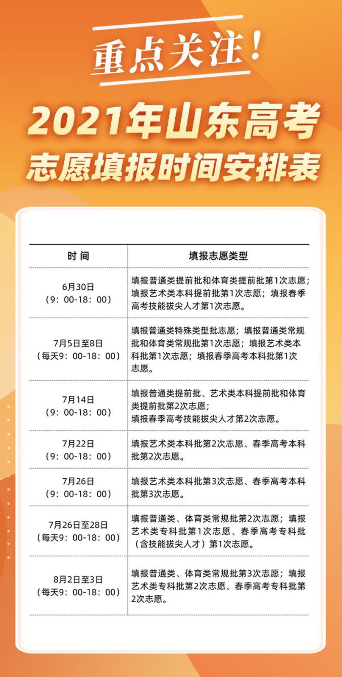 2021年山东高考志愿填报时间安排表