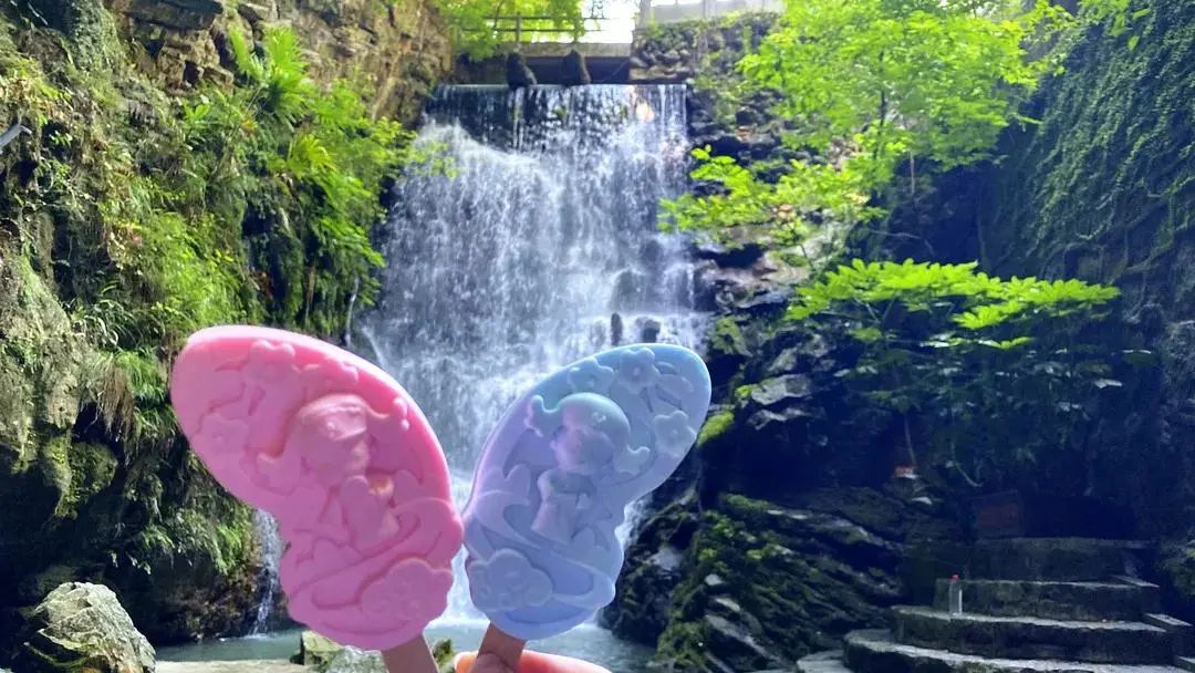 手持文创雪糕与对应景观来一张合影