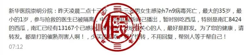 “南汇8424西瓜暂时别吃,有人吃了感染h7n9病毒死亡”