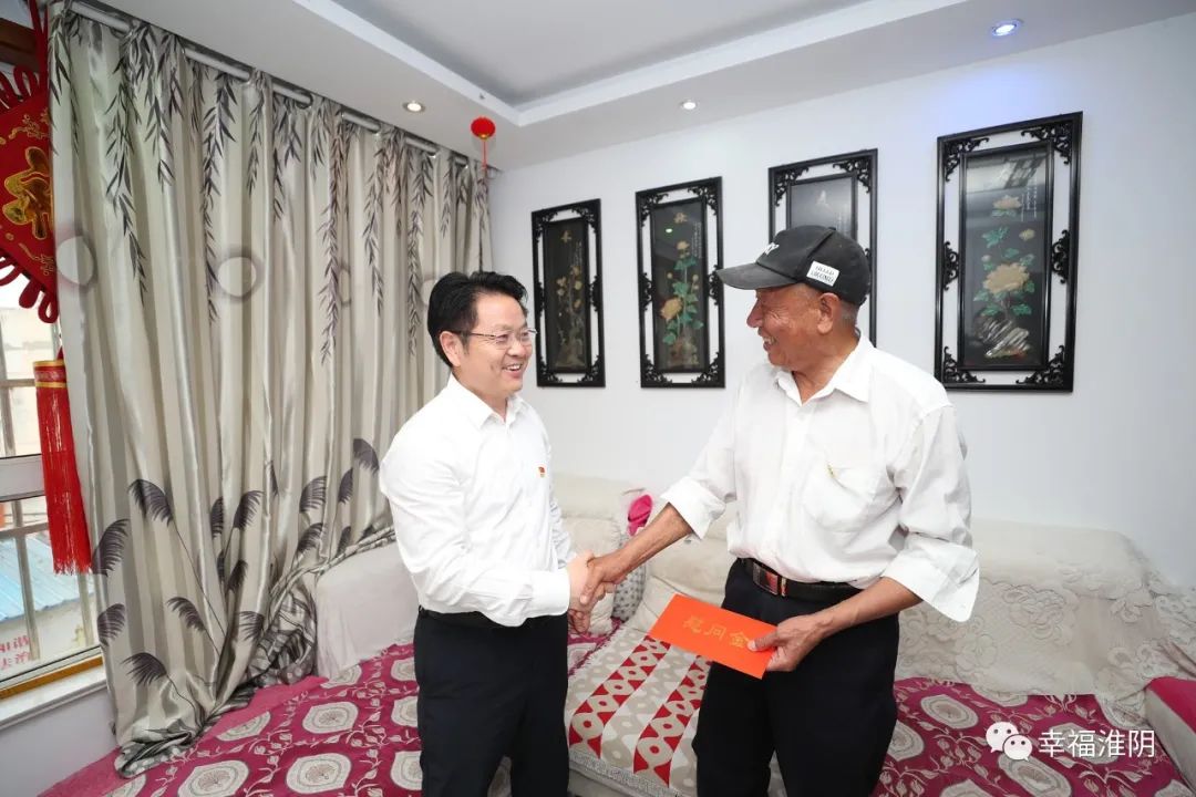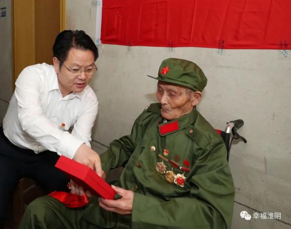 今年93岁的老党员于跃书已有74年党龄,曾参加过解放淮阴、高邮战役和淮海战役、渡江战役。多年来,他始终牢记初心使命,用实际行动践行为党奋斗、对党忠诚的铮铮誓言。董国喜与老人促膝而坐、亲切交谈,关切询问他的身体状况和生活情况,共同回顾党的百年奋斗历程和取得的辉煌成就。董国喜拉着老人的手说,今年是中国共产党成立100周年,在这个特殊的历史时刻,颁发“光荣在党50年”纪念章,是以习近平同志为核心的党中央对老党员的政治关怀和尊崇厚待,今天我特意来给您送上这份具有纪念意义的礼物,感谢您为中国革命事业作出的贡献,党和政府永远不会忘记您,衷心祝福您健康长寿、生活幸福。董国喜为老人佩戴纪念章,送上慰问金,并叮嘱亲属要照顾好老人的日常生活起居。