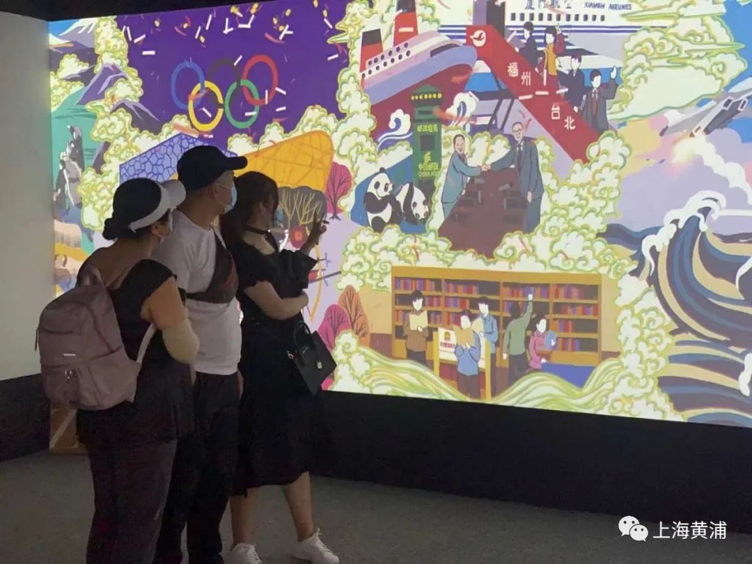 沉浸式空间以128幅金山农民画为载体,从石库门的星星之火,到南湖的点点波澜,展示了中国共产党在艰难中起步,在曲折中发展,带领全国人民不断从胜利走向另一个胜利的100个历史瞬间。