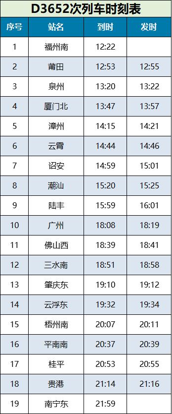 2021年6月25日零时起,铁路部门将实行今年第三季度列车运行图。本次调图主要以提质量、优结构为重点。新图实施后,梧州南站将加开D3651、D3652次动车组列车。从6月26日起,梧州将首次开通直达厦门、福州、泉州、潮汕、莆田等地的高铁!现在12306网站已经可以购票!