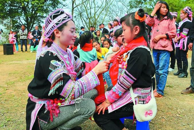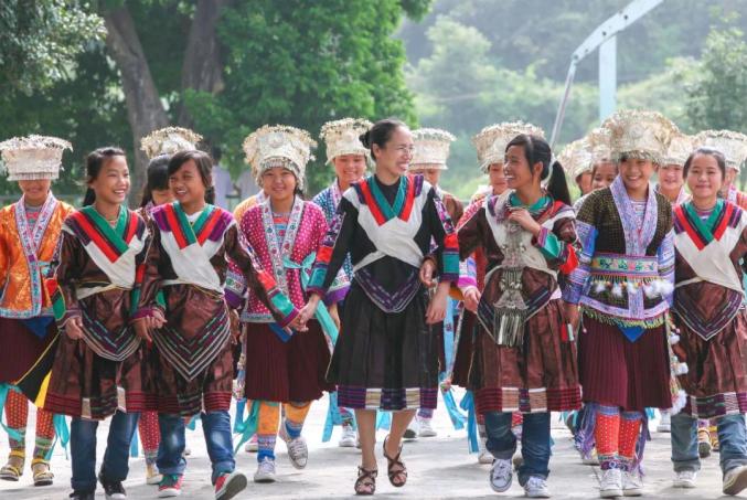 ▲融水苗族自治县首届红瑶女童班学生凤桂鲜学成归来反哺家乡,成为该县第一位红瑶女教师。2014年,她被表彰为“中国儿童慈善奖——春蕾之星”。龙 涛/摄