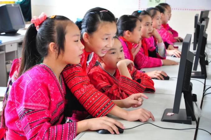 ▲2016年9月5日,龙胜各族自治县泗水乡春蕾女童班的学生在上电脑课。如今的春蕾女童班在社会各界的支持下,教学水平得到极大提高,配套设施得到极大改善。黄勇丹/摄