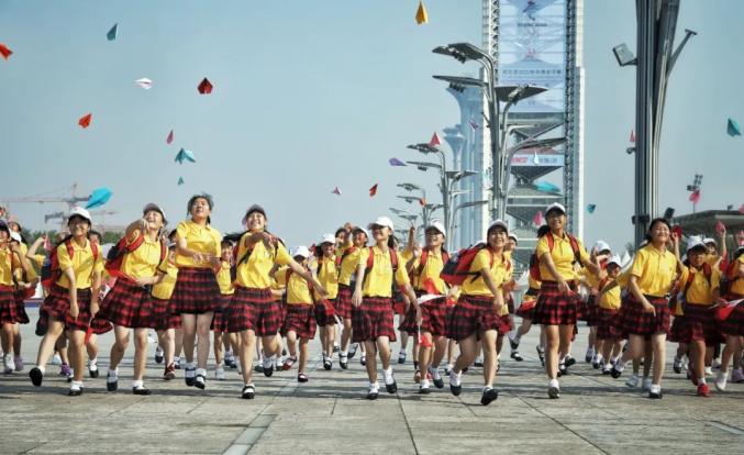 ▲2019年,广西春蕾女童参加全国妇联举办的“春蕾计划”30周年活动,孩子们放飞手中的纸飞机,向着梦想启航!