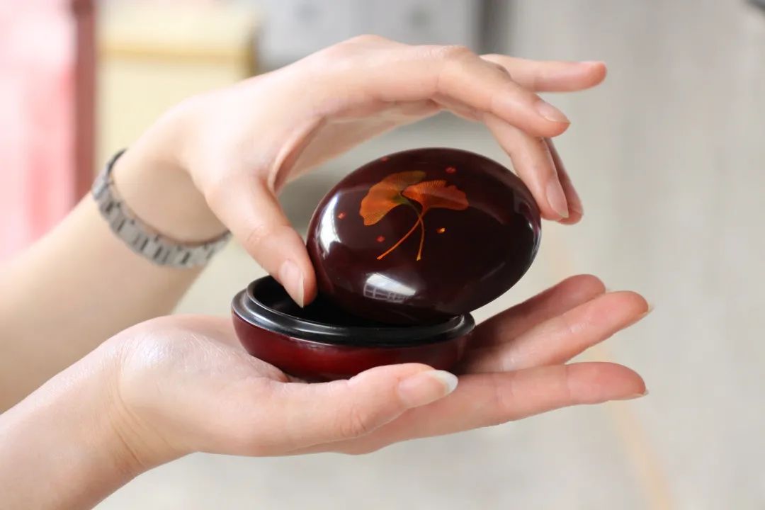 雕银丝光晕彩银杏印泥盒,图源/成都漆器工艺厂来自法国图卢兹的文森,工作中也时不时会用到漆这种材料。但都是工业漆。