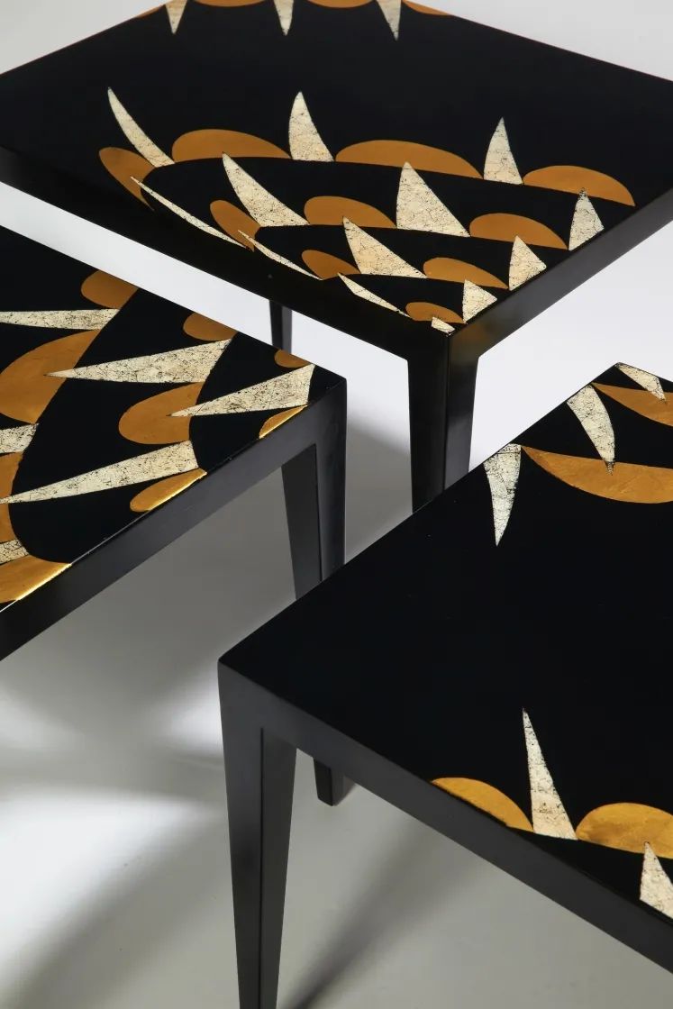 隋斯的漆艺作品以其大漆家具设计为代表,他不仅在天然漆的基础上使用人造漆以拓宽作品色彩,还加入蛋壳、金箔等元素作为装饰,形成了独特的个人风格。