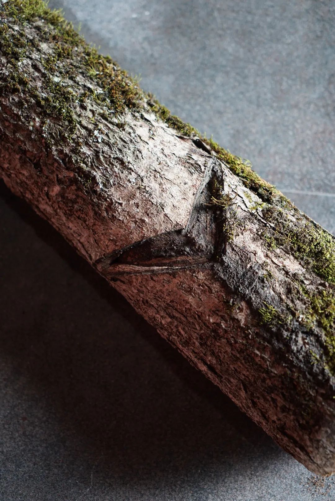 文森·漆的艺术创作从采集生漆开始。离他工作室最近的优质生漆产地是重庆市的城口县,每年文森都会到山里与农民一起采割生漆。割破树皮,做成一个“V”字形切口,川渝地区的漆农习惯于在切口处插入一只贝类的大壳,承接从漆树的“伤口”中流出的乳白色生漆。