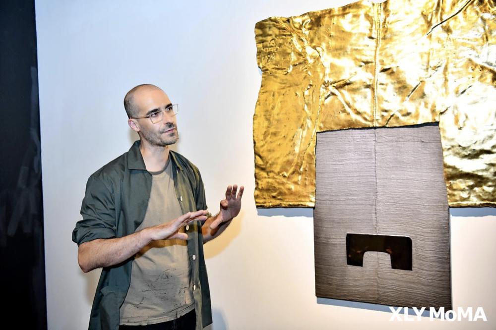 在许燎源博物馆的展览上就有这样两件作品:一件创作于2019年,文森·漆在米袋上刷漆并覆盖上金箔,剪掉一块空缺后嵌以自己纺织的棉布。