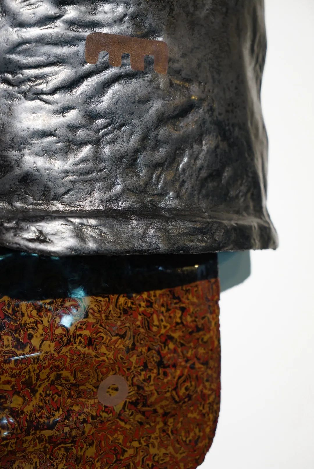 此次在许燎源博物馆展出的2021年新作中,就有好几件,是文森·漆特地到四川凉山彝族自治州,拜访两位彝族漆器的非遗传承人白石夫机和吉伍武且,深入了解了彝族漆铠甲和漆皮碗的制作工艺后而创作的。
