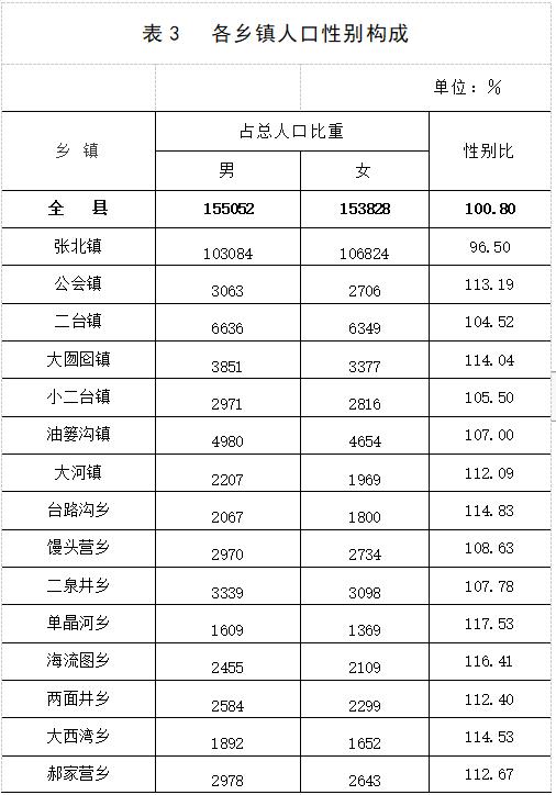 常住人口308880人!张北县第七次全国人口普查结果公布!