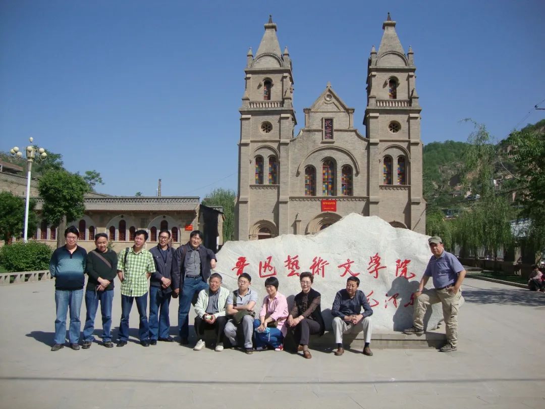 2012年6月16日,陪中国作协延安采风团作家参观鲁艺旧址左起:魏建国、马步升、张品成、李松涛、阿成、谭谈、毛眉(左8)、高凯(左10)
