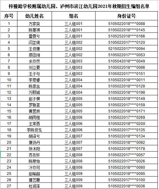 原标题:《@泸州家长,江阳区2021年主城区公办幼儿园招生编组名单出炉》
