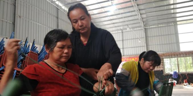在广宁县宾亨镇“娟姐”藤编扶贫工作坊内,作坊负责人禤容娟正与工人们一起忙着赶藤椅订单。“娟姐”禤容娟曾是一名贫困户,习得一门藤编手艺。宾亨镇镇委书记黄捷在走访入户了解了她的情况以后,协调成立起藤编扶贫工作坊。如今,娟姐每个月能有4000元左右的收入,工作坊还带动了43名贫困户和群众就业增收。